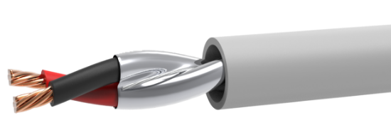 18 AWG 2C 7 STRAND BARE COPPER WIRE WITH .007" PVC INSULATION, OVERALL ALUMINUM MYLAR TAPE SHIELD WITH A 24 AWG 7 STRAND TINNED COPPER DRAIN WIRE, OVERALL .015" GRAY PVC JACKET. 75˚C (UL) CL3R SUN RES OR FPLR OR C(UL)US CMR FT4 "ROHS COMPLIANT".
